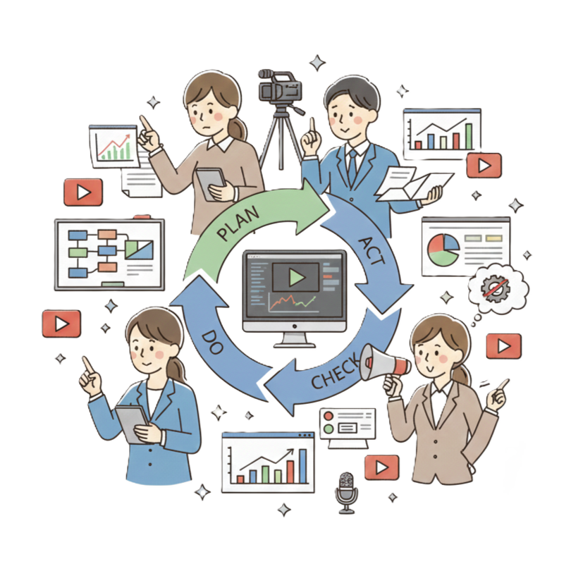 動画は「1本作って終わり」では価値が出ません。視聴データをもとに改善し続けることで、成果は1.5〜3倍に伸びます。